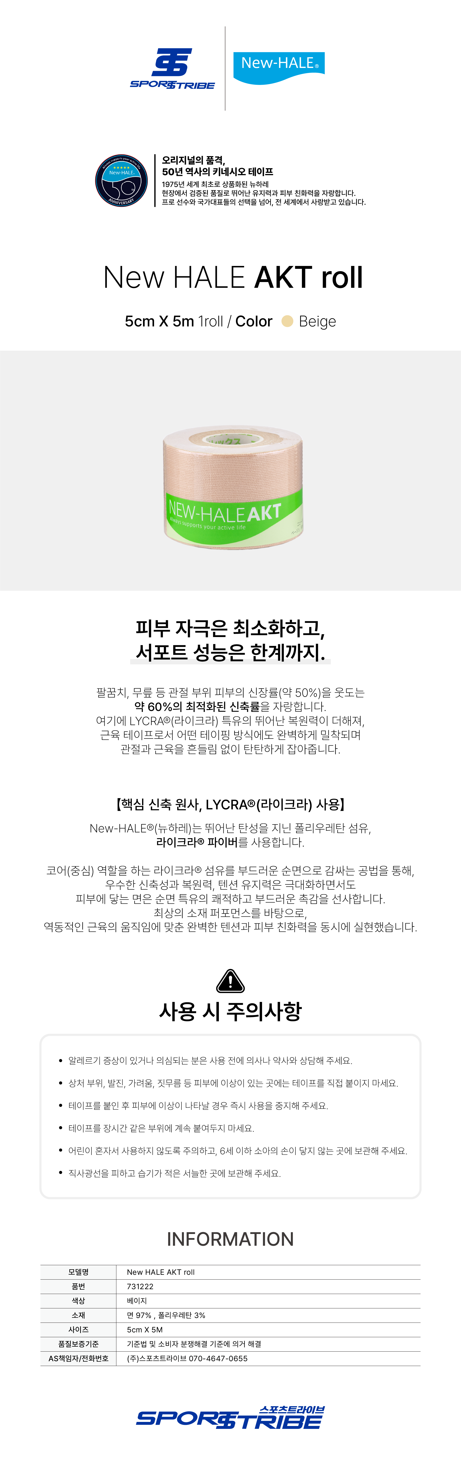 New HALE 뉴하레 AKT roll 5cm X 5m BeigeNEW